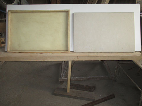 Делаются из фибробетона – обычного пескобетона с добавлением фибры с    уплотнением на самодельном вибростоле.